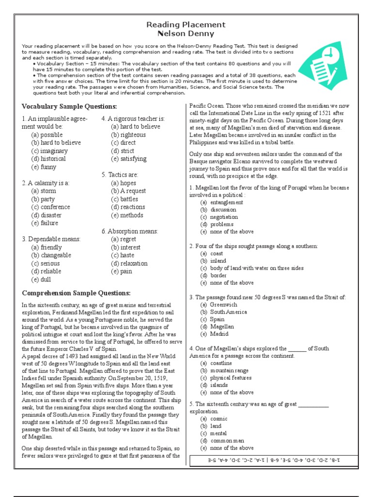 Nelson Denny Reading Comprehension And Vocabulary Test This
